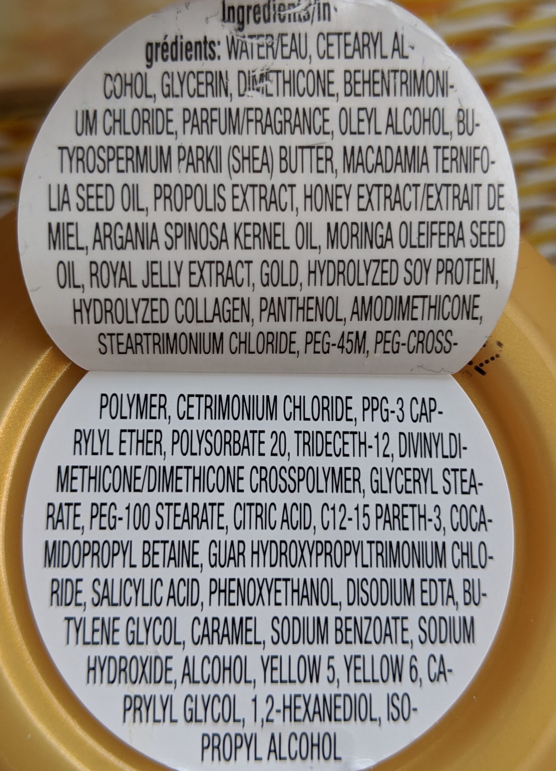 - Royal jelly (the food of bees) – Helps lock in shine and restore hair’s natural luster.