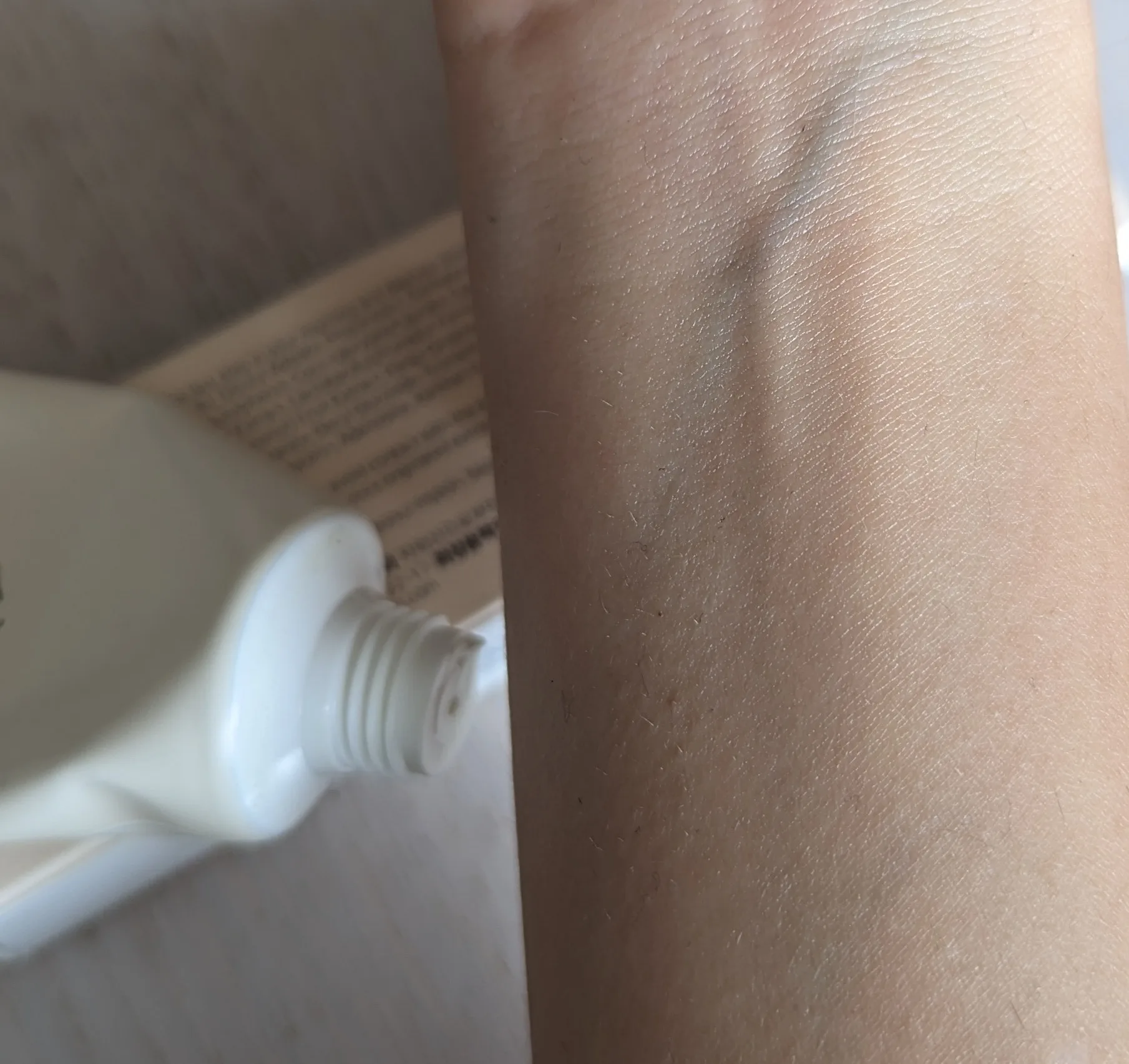 FINISH: After initial application, my skin looks bright and glowy. I notice a little bit of a tone up effect, probably from Tinosorb M. Once the sunscreen sits, that questionable cast is gone.