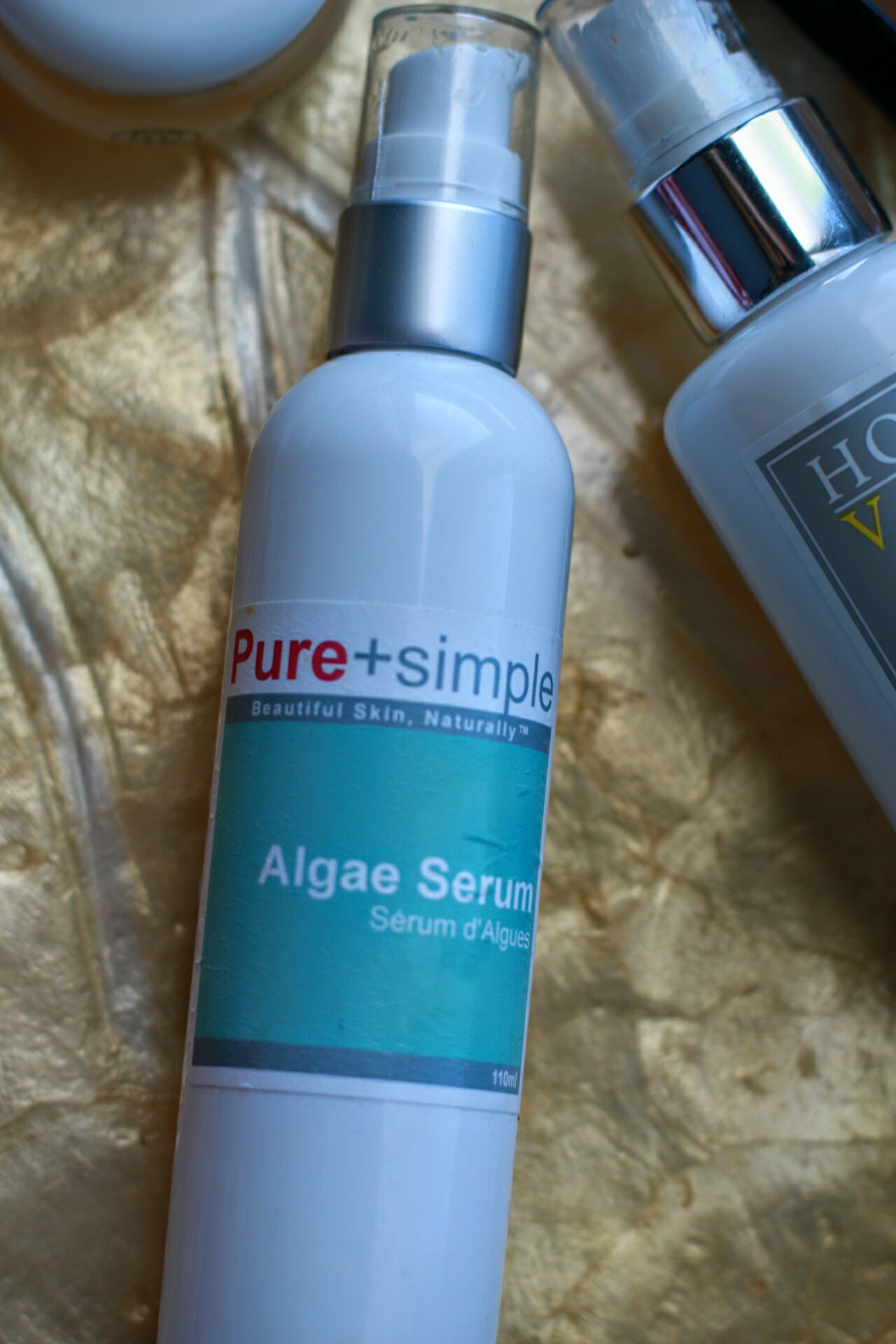I remembered Shameless Maya’s video on her skincare routine, and she raved about the Pure + Simple Algae Serum; she has oily skin and found that the serum alone left her skin feeling normal and moisturized. She also mentioned it can be found in a spa in Toronto.